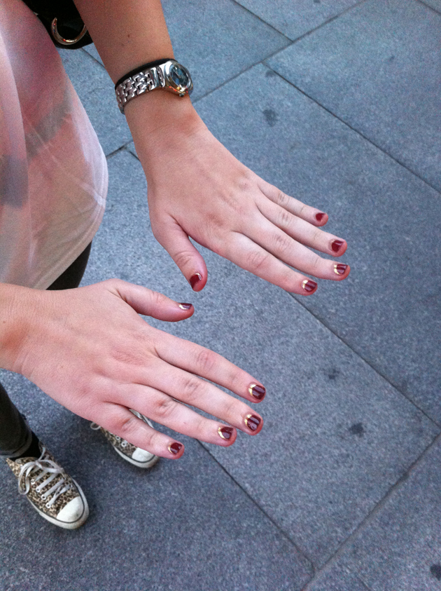 Yo quería conocer en concreto la colección inspirada en Skyfalls, la última de 007, y he de reconocer que me gustó mucho, sobre todo con la manicura que me hicieron con los dos colores. Y es que las manicuristas OPI -que son unas artistas- me hicieron una especie de manicura francesa, pero a la inversa, es decir, había dos colores, pero en vez de tener uno en la punta de la uña, lo tenía en la zona cercana a la cutícula.