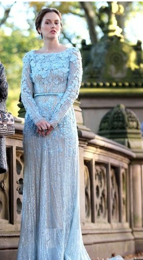 Por un lado, Blair se casará de azul, con un vestido que parece firmado por Jenny Packham, elegante, romántico y 100% Waldorf. El vestido parece hecho a medida para esta reina de la manipulación. El pelo, lo lleva recogido en un bonito moño adornado, como no, por una de esas diademas que la han convertido en la reina de este tipo de complementos. Una boda en Central Park con un Chuck vestido de blanco, y con intervención policial incluída...