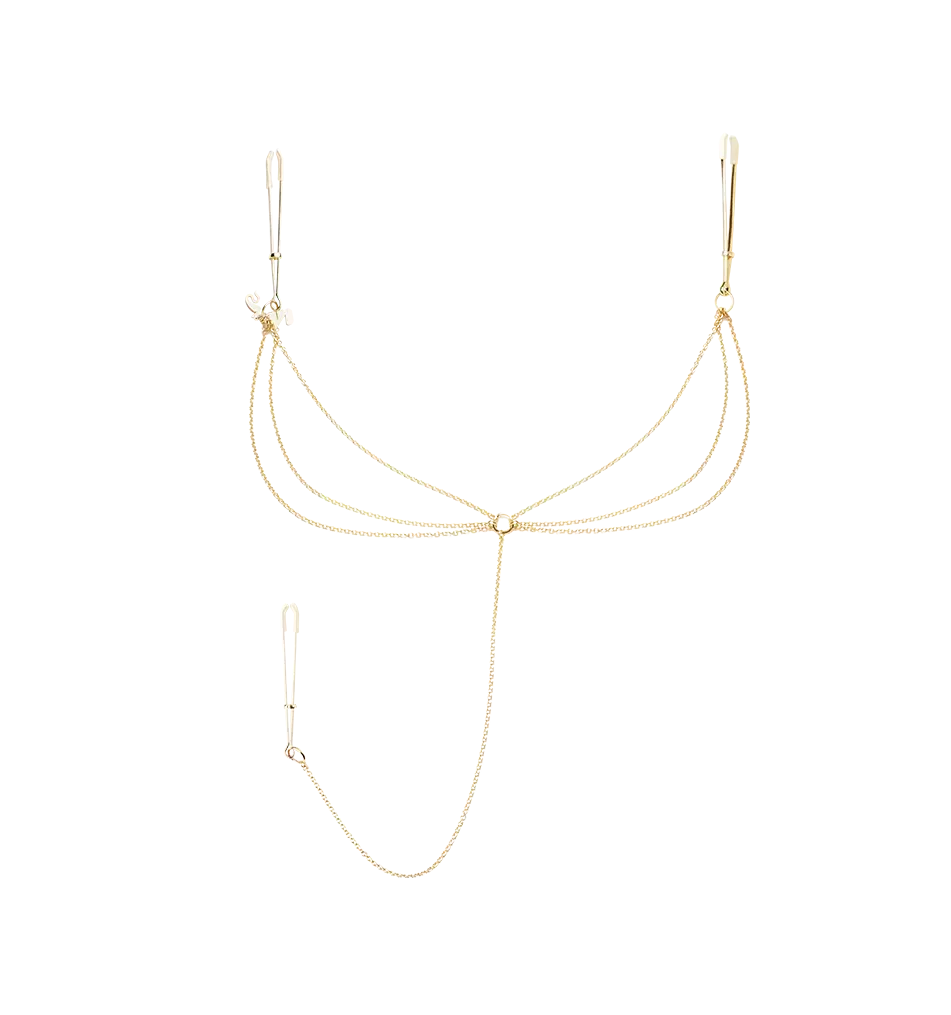 Quizás las pinzas más bonitas del juego, estas bellezas doradas hacen las veces de cadena corporal. Llévalas para salir por la noche o solo en tu habitación para una sesión en solitario de lo más glamurosa. Sólo asegúrate de llevarlas lo suficientemente sueltas para que no te corten totalmente la circulación si las llevas durante un largo periodo de tiempo.