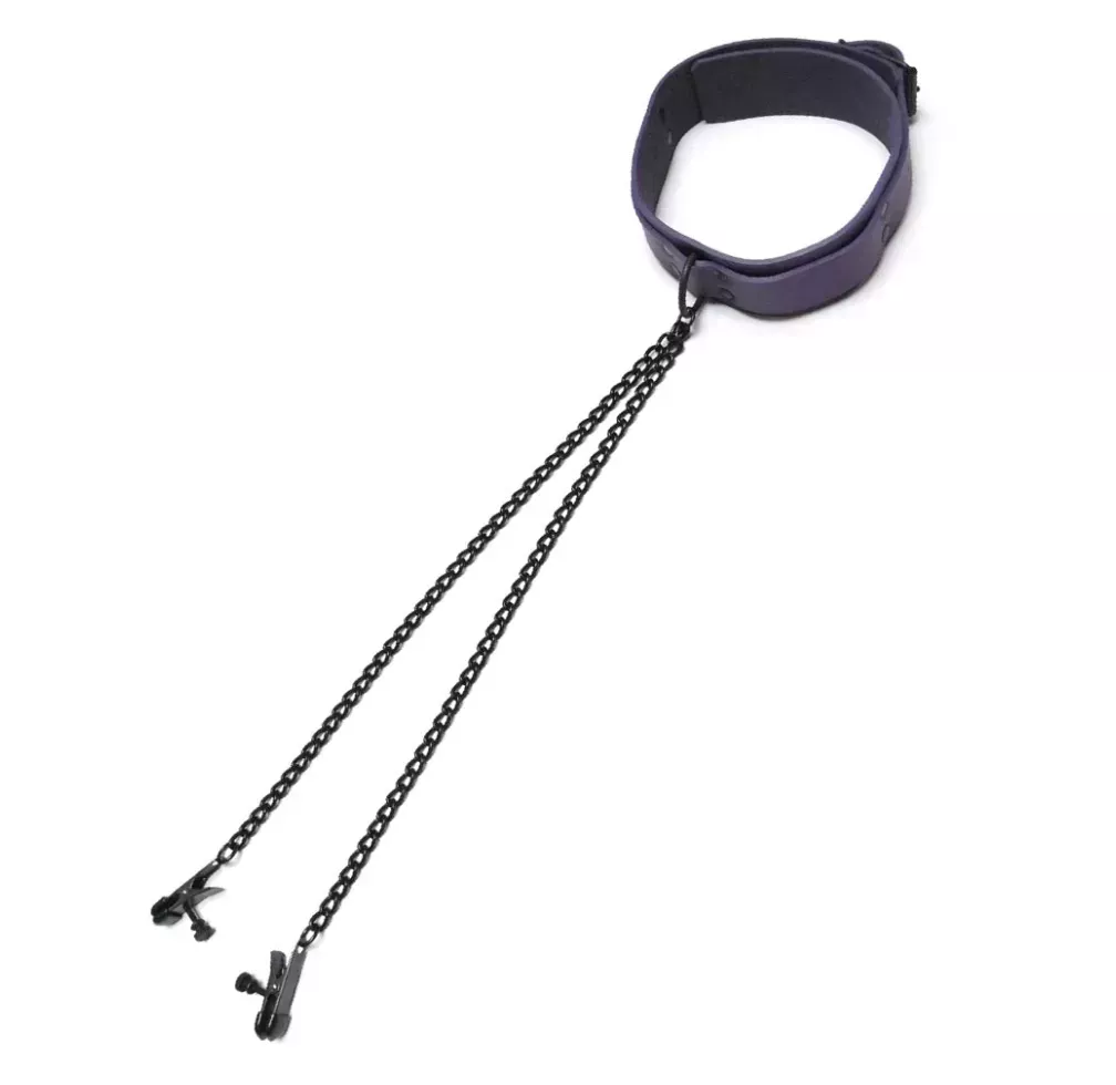 Estas abrazaderas desmontables están conectadas a un collar normal que permite un fácil control y accesibilidad. Las pinzas y el collar son ajustables, por lo que es ideal si practicas BDSM.