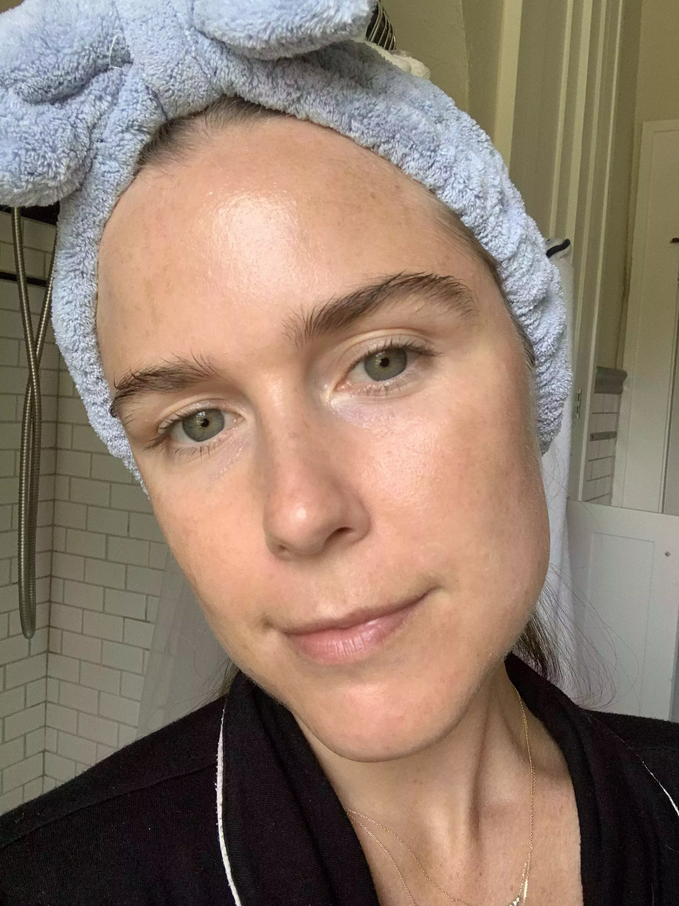 Burns también se dio permiso para convertir su rutina diaria de cuidado de la piel en un momento privado de paz: "Me di cuenta de que Calvin va a estar bien si hago espacio para mí", dice. "Estos momentos, por breves que sean, hacen que Burns tenga un mejor estado de ánimo para el día y, en última instancia, la hacen sentir mejor madre.