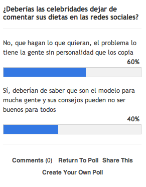 - Un 60% de nuestras lectoras pasan de lo que digan las famosas y no las toman como ejemplo dietéticos.