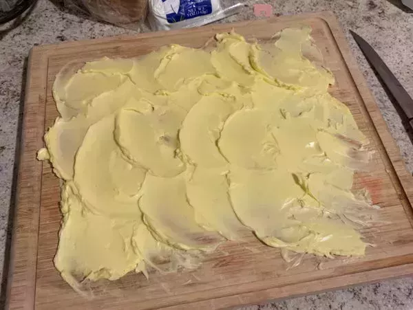 Unté la mantequilla en la tabla de cortar. Esta parte podría iniciar un reflejo de retroceso, pero te animo a continuar