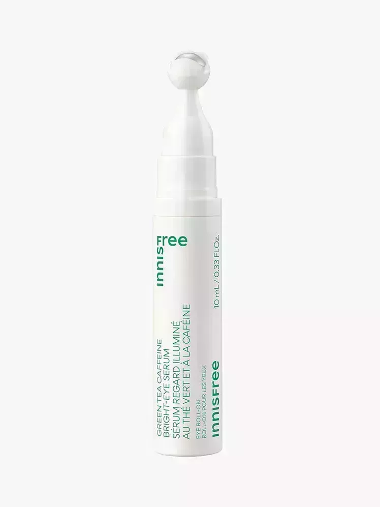 El Sérum Ojos Luminosos Té Verde Cafeína de Innisfree viene con un aplicador metálico refrescante para despertar tus ojeras mientras su fórmula hidrata e ilumina.