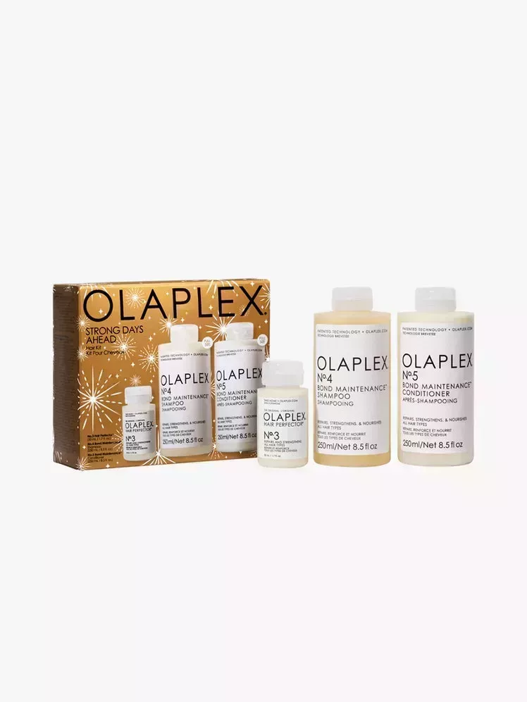 El Kit Días Fuertes de Olaplex es el trío fortalecedor con el que sueña su cabello. Incluye dos dosis completas -el champú Bond Maintenance nº4 y el acondicionador Bond Maintenance nº5- y un mini Hair Perfector nº3 para formar un equipo ganador.