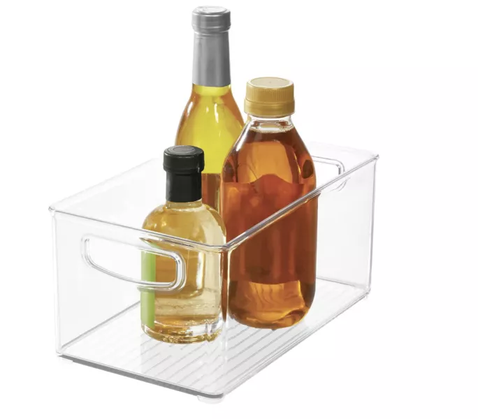 Fridge and Freezer Organizer Bin with Integrated Handles