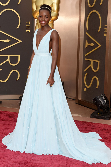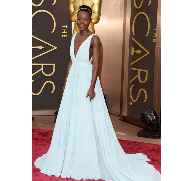 Empecemos con Lupita, la reina indiscutible de la noche. Vestida con un Prada de gasa con escote en pico en pecho y espalda. Como siempre volvió a demostrar que lo suyo es la elección de color, y volvió a acertar con el azul bebé de su vestido.