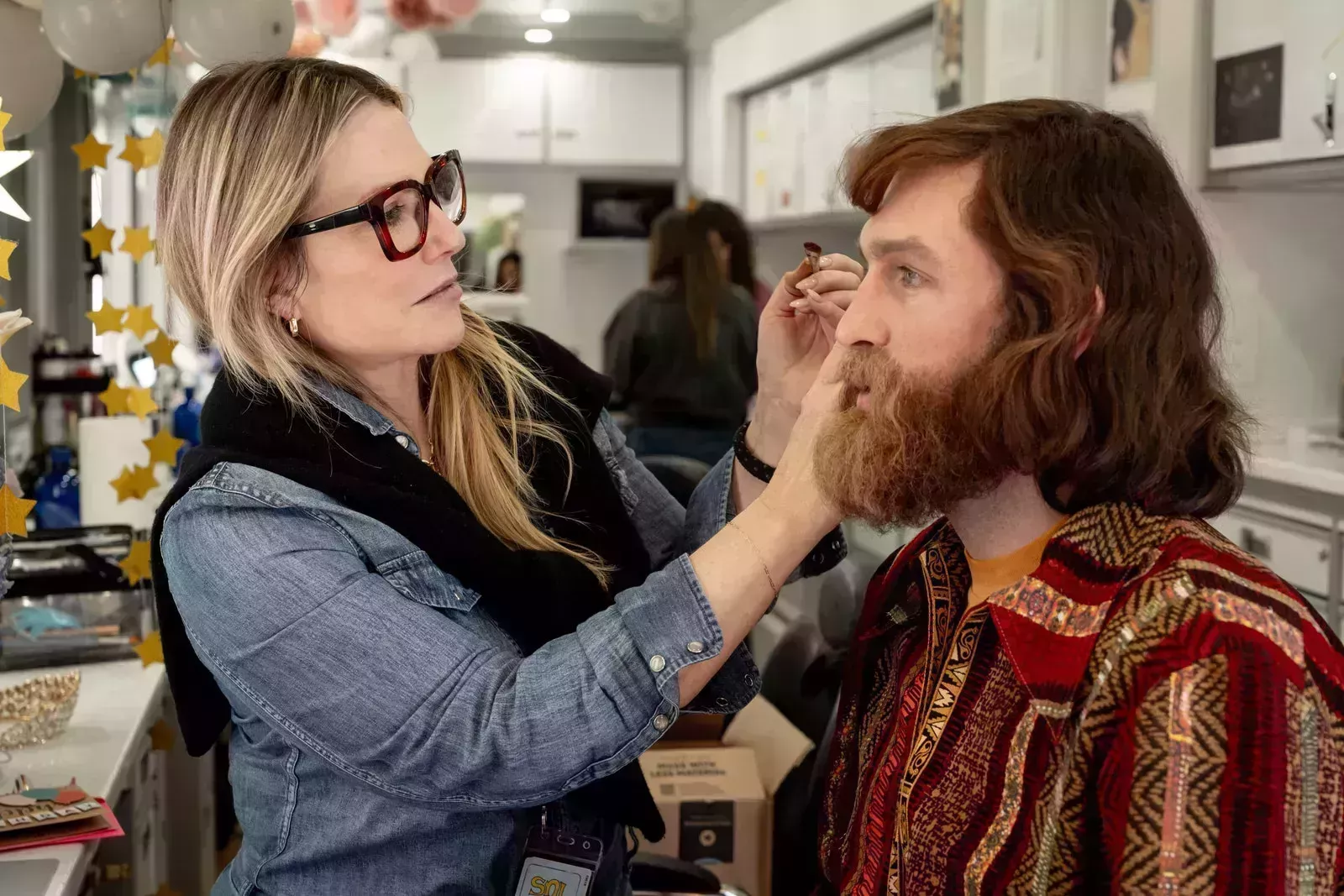 Apenas he arañado la superficie de la magia del maquillaje y el peinado de Saturday Night. Hay mucho más, como el uso de calvas, 27 pelucas en total para el reparto principal (además de estantes llenos de pelucas para los actores secundarios) y una prótesis de pene para J.K. Simmon que, francamente, merecía más tiempo en pantalla. Además de diseñar el aspecto de cada personaje, Sawyer y Thompson también tuvieron que mantener a sus equipos (y a los actores) dentro de los plazos previstos, una hazaña de la que no cabe enorgullecerse.