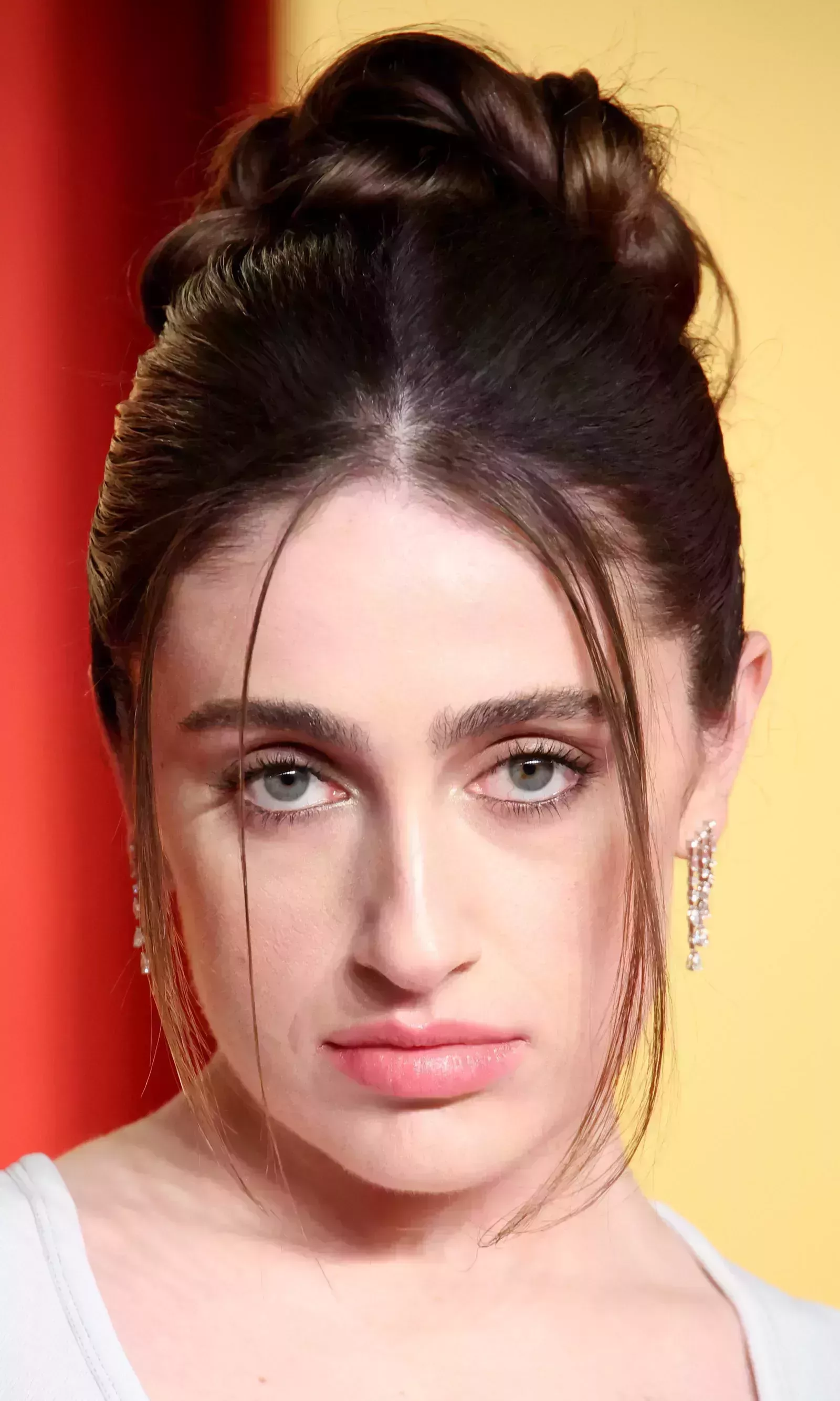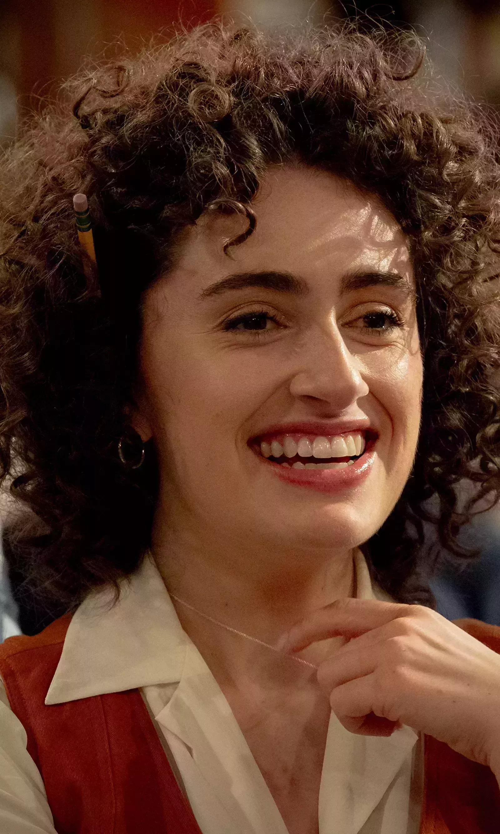 El pelo de Rachel Sennott es largo y liso con algo de textura, muy diferente al de su homóloga en la pantalla, Rosie Shuster. Sorprendentemente, no lleva peluca; se utilizó un moldeador T3 Interchangeable Styling Wand para crear esos rizos en sacacorchos, que no fue una tarea tan sencilla como parece. "Fue una hora en la peluquería, peinando a esa pobre chica todas las mañanas", dice Thompson.