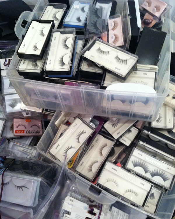 Toda esta cantidad ingente de pestañas postizas son para los participantes en el Factor X de Estados Unidos. Wow. El maquillador del programa compartió con sus seguidores de Twitter esta curiosidad y nosotros nos hemos quedado flipando. Creo que la cultura de la pestaña postiza no está muy extendida en España, pero en muchos otros lugares sí. De hecho estoy más que harta de ver cientos de bloggers y gurús con pestañas postizas.