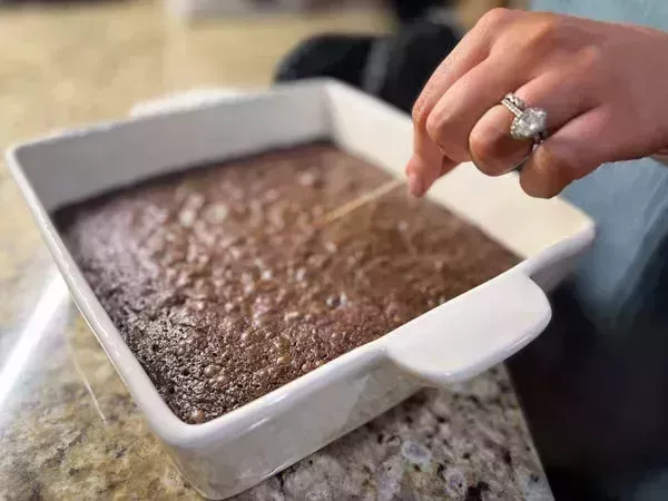 La clave para que los brownies salgan perfectos es cocinarlos poco, sabiendo que seguirán cociéndose en la sartén caliente después de sacarlos del horno.