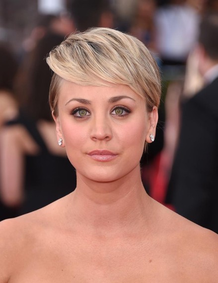 9. Pixie flequillo lateral: la versatilidad de este corte de pelo te permite conseguir distintos estilos. Kaley Cuoco eligió llevarlo con un largo flequillo peinado hacia un lado, ¡y le sienta genial!