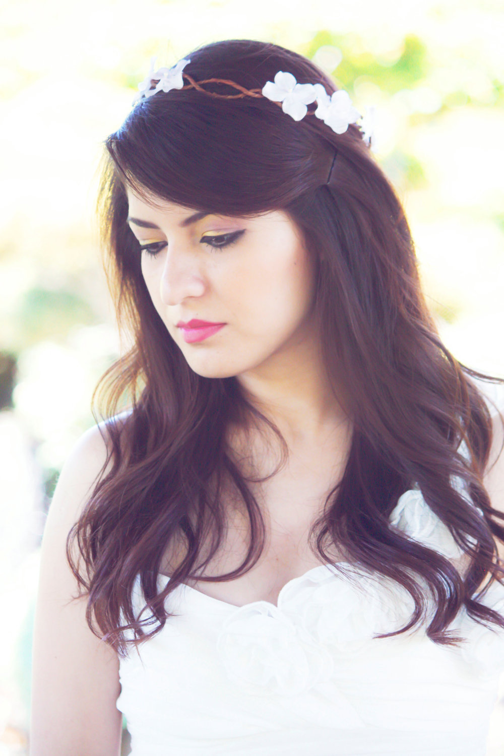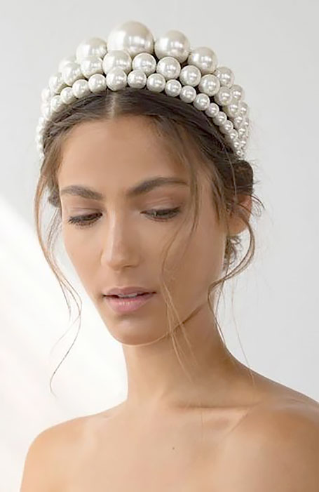 Las diademas han vuelto a estar de moda recientemente. La última tendencia son las versiones con perlas, o con perlas de imitación. Para novias a la moda, es el accesorio imprescindible en el gran día! Para evitar que la cinta parezca demasiado infantil, combínala con un peinado chic en lugar de un pelo largo y suelto. Además, si mantienes el peinado en un nivel mínimo, la diadema en sí misma puede hacer una declaración audaz, y no tendrás que preocuparte por cambiar el peinado de tus mechones a mitad de la noche.