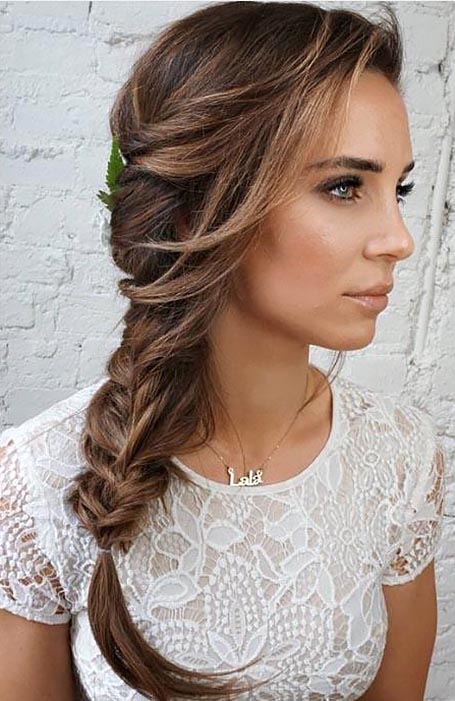 Para las novias más bohemias, una trenza lateral es un gran peinado para el día de la boda. Es femenino y con estilo, sin ser demasiado exigente o"arreglado". Debido a que este estilo se ve mejor cuando se usa de una manera suelta y relajada, nunca tendrás que preocuparte de arreglarte el cabello el día de tu boda! Una trenza lateral es un estilo romántico y sin esfuerzo que mejora a medida que lo llevas puesto. Tampoco será víctima de cambios climáticos repentinos, como el viento o la humedad.