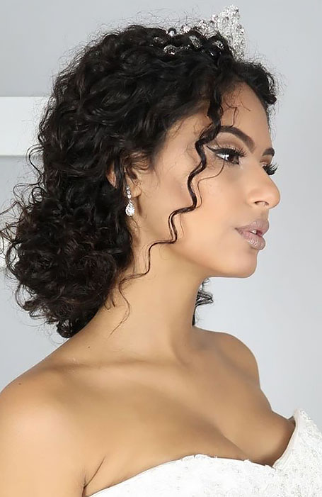 No hay mejor momento para dejar que tus rizos brillen que el día de tu boda. Asegúrese de que sus torceduras y espirales estén en su punto preparándose con un producto hidratante y terminando con un spray que defina los rizos. Mientras que muchas novias de pelo rizado eligen dejar que su melena corra libre, también hay muchas opciones de estilo disponibles. Una de las opciones más populares es un look medio hacia arriba, medio hacia abajo. Presume de tu textura pero se asegura de que tu rostro no se vea abrumado por el vello. También es ideal si vas a tener una boda de verano y no quieres sobrecalentarte!