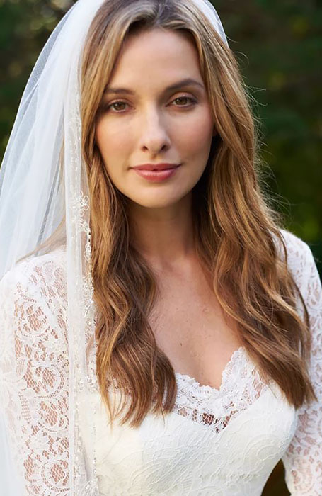 El ovalado y en forma de corazón se adaptan al peinado de la parte media. Muchos lo consideran un look casual para todos los días. Sin embargo, no hay nada que detenga a los fanáticos del peinado de abrazarlo para su boda también! Muchas novias eligen contrastar la afilada raya central con las suaves y bohemias olas que enmarcan sus rostros. Si usted decide ir para ese tipo de peinado, opte por un velo largo.