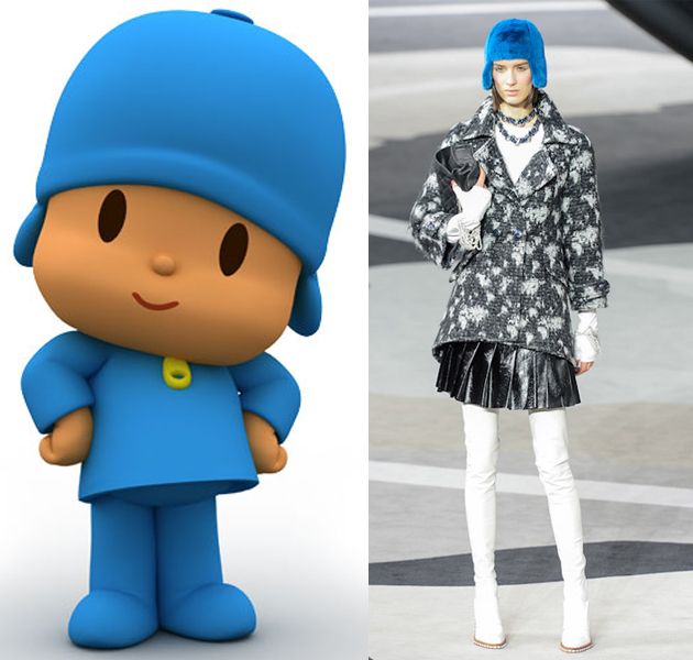 ¿Somos los únicos que vemos cierto parecido entre los gorros de las modelos del desfile de Chanel otoño 2013 y el que luce el personaje aniamado Pocoyó? Esperemos que no…
