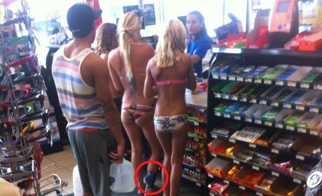 A simple vista, esta foto parece mostrar a tres amigas en bikini comprando en una gasolinera. El misterio de la imagen no está en sus cuerpos, ni en sus bikinis. Tampoco se trata de los productos que aparecen en el mostrador, o de la mujer que las está atendiendo. Muchos piensan que la clave podría estar en el hombre que espera detrás de ellas, pero no, tampoco hay nada extraño en él. Entonces, ¿qué es eso que ha inquietado a tanta gente y que ha hecho que la foto sea tan compartida?