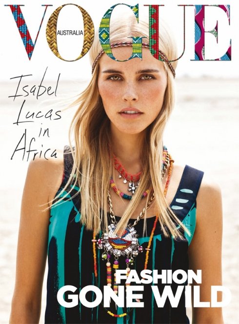 La primera es la portada protagonizada por Isabel Lucas, una de las tops que han hecho del estilo hippy algo con tanta clase como el chic francés. Lo único que compite en esta portada es la belleza de Lucas con las letras tuneadas de la portada. Ese estilo navajo y lleno de diferentes estampados y texturas es lo que más me ha gustado de la portada de diciembre del Vogue australiano.