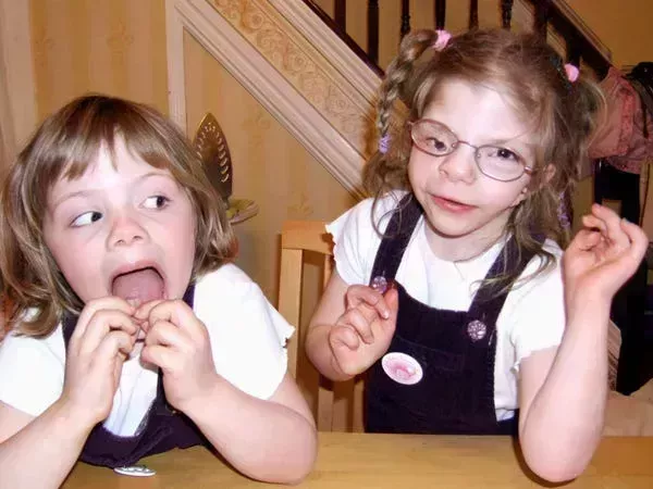 Hannah Ross, a la derecha, fotografiada de pequeña junto a su hermana gemela, Emma Cortesía de Hannah Ross