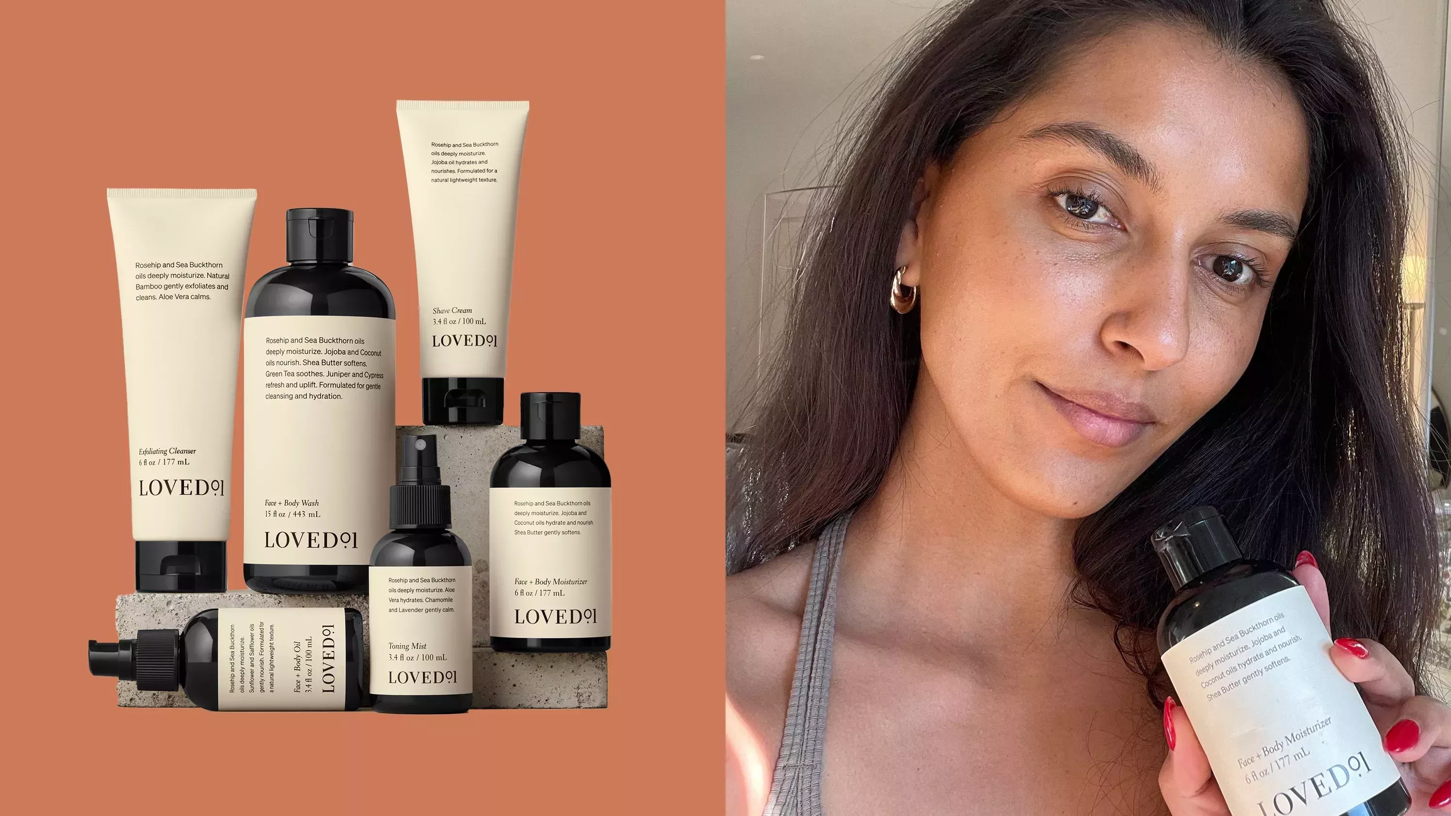 Pero la gran pregunta es: ¿Funcionan los productos Loved01? Rachael Edwards, directora de redes sociales de Allure, y Talia Gutierrez, directora asociada de proyectos especiales, probaron los primeros productos de Loved01, que incluyen un lavado facial y corporal, un limpiador exfoliante, una crema de afeitar, una bruma tonificante, una hidratante facial y corporal y un aceite facial y corporal.