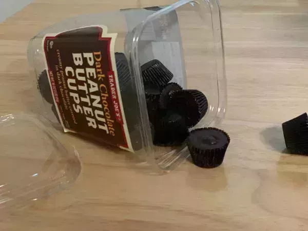 Casi siempre que entro en Trader Joe's, un paquete de estas tulipas de chocolate negro con mantequilla de cacahuete se cuela en mi carrito.