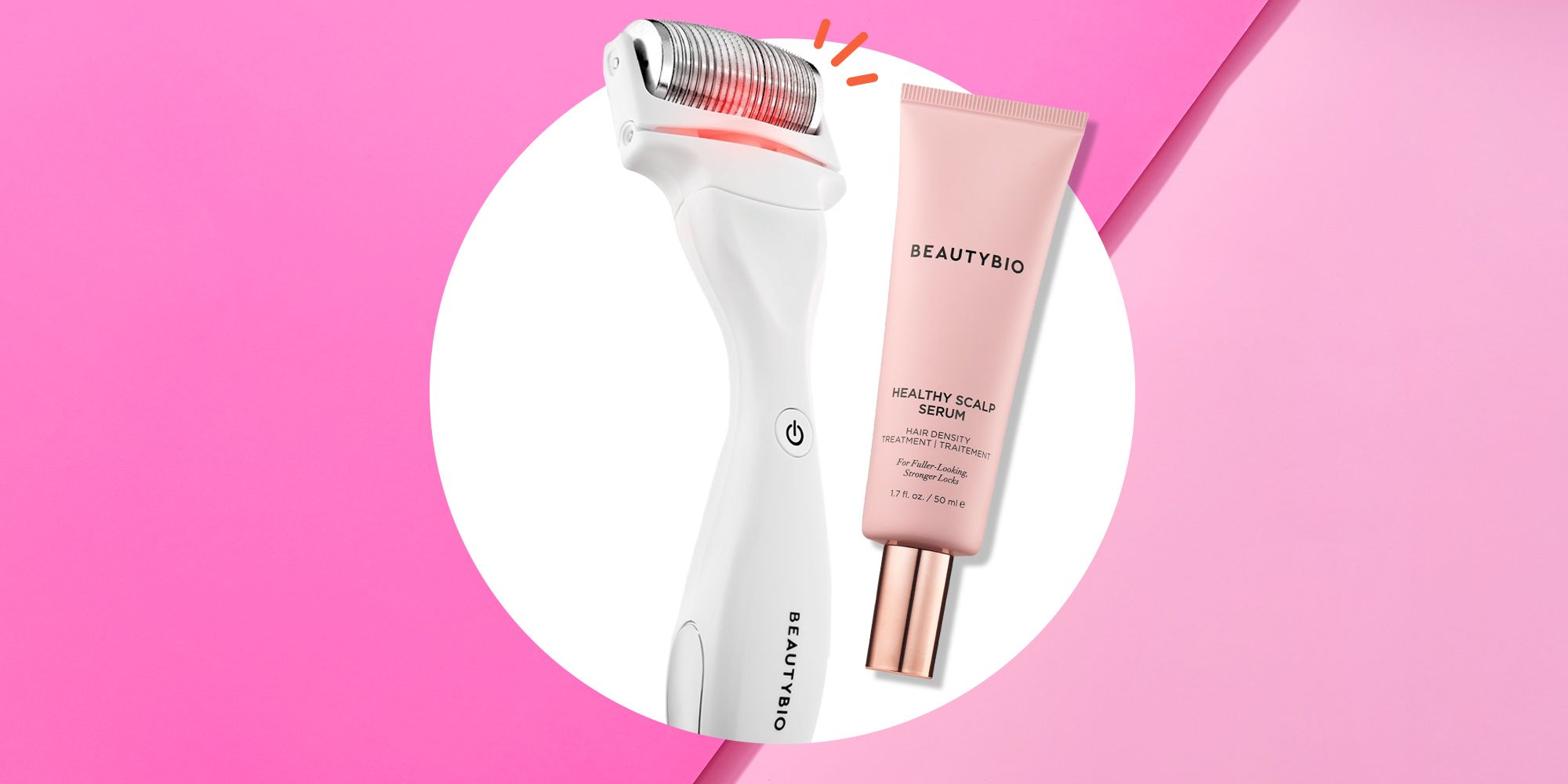 El sistema de BeautyBio incluye un cabezal de dermaroller con agujas de 0.3mm (no, no duelen ni sacan sangre) que tiene un cojín que se flexiona, como una navaja, para que se doble con tu cuero cabelludo, junto con un "suero de cuero cabelludo sano". El suero es una mezcla de ingredientes calmantes, fortalecedores e hidratantes tanto para el cuero cabelludo como para el propio cabello e incluye hoja de níspero, hoja de camelia, zinc y extracto de rosa, por nombrar algunos. Dicho esto, si ya tienes un suero para el cuero cabelludo que te gusta o uno que tu peluquero o médico te ha recetado, también puedes combinarlo con la herramienta de micronutrientes.