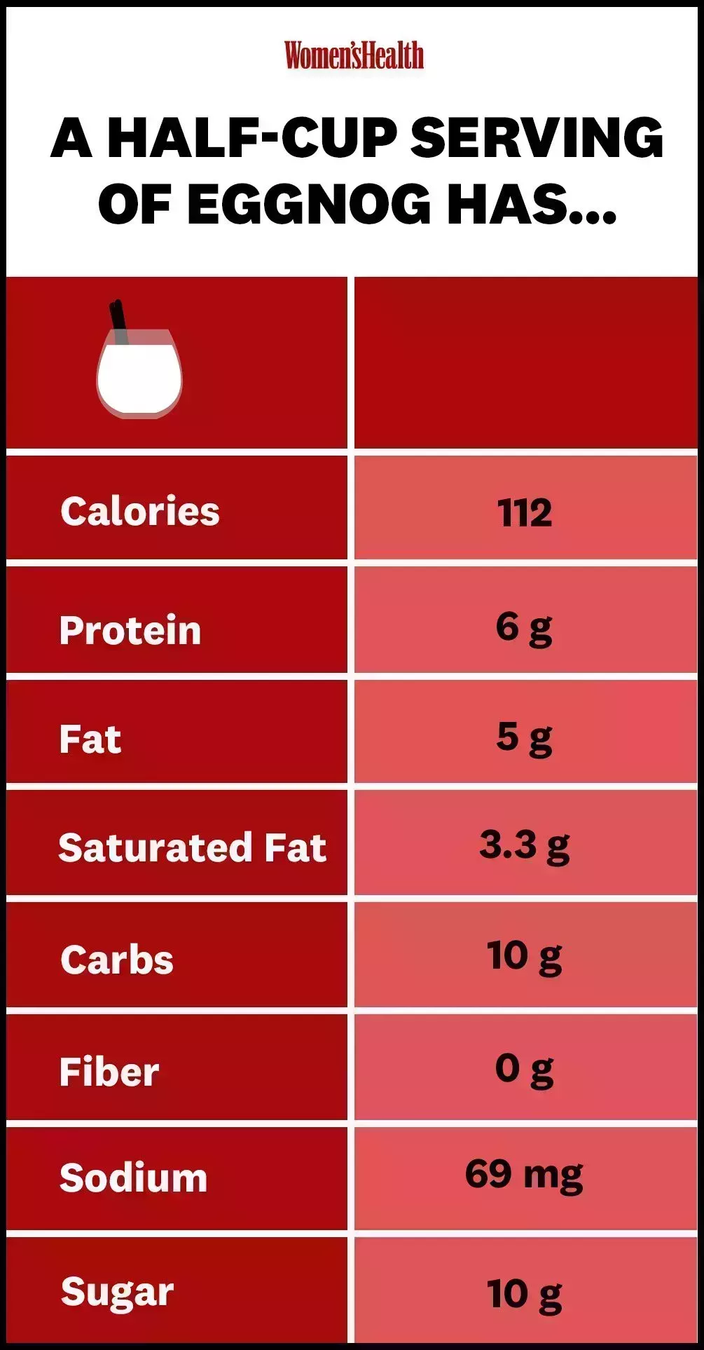 Pero, ¿cómo es la nutrición del ponche de huevo?Comparado con otras bebidas, es bastante indulgente: "El ponche de huevo tiene muchas calorías y grasas saturadas debido a la leche entera y a la nata espesa. También está cargado de azúcar", dice Christy Brissette, R.D., presidenta de 80 Twenty Nutrition.