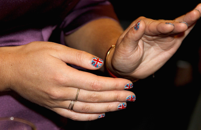 Unas pequeñas banderitas de la Union Jack decoraban las uñas de este chica, que pasaban un poco desapercibidas, pues hay que fijarse (y poner el zoom de la cámara al máximo) para observar esta manicura tan currada. ¿Qué habrá pensado su abuela? ¿le habrá parecido la idea protocolaria?