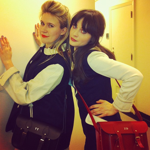 Ya hace tiempo que este bolso tipo cartera colegial lleva ocupando nuestros sueños. Lo hemos visto en colores metalizados, flúor y también en los clásicos de toda la vida. Echando el otro día un vistazo al Twitter de la adorable (¿existe un adjetivo que la defina mejor?) Zooey Deschanel, nos topamos con esta foto, en la que la actriz posaba con con otra amiga y cada una lleva su satchel correspondiente. El de la Deschanel es rojo y lleva grabado las iniciales de la actriz de New Girl. Es el de 11 pulgadas y es justo el que nosotros queremos.