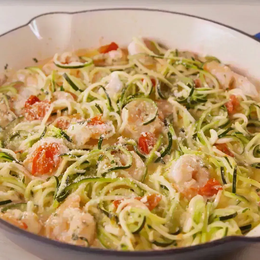 12 Pasta de calabacín con gambas y ajo