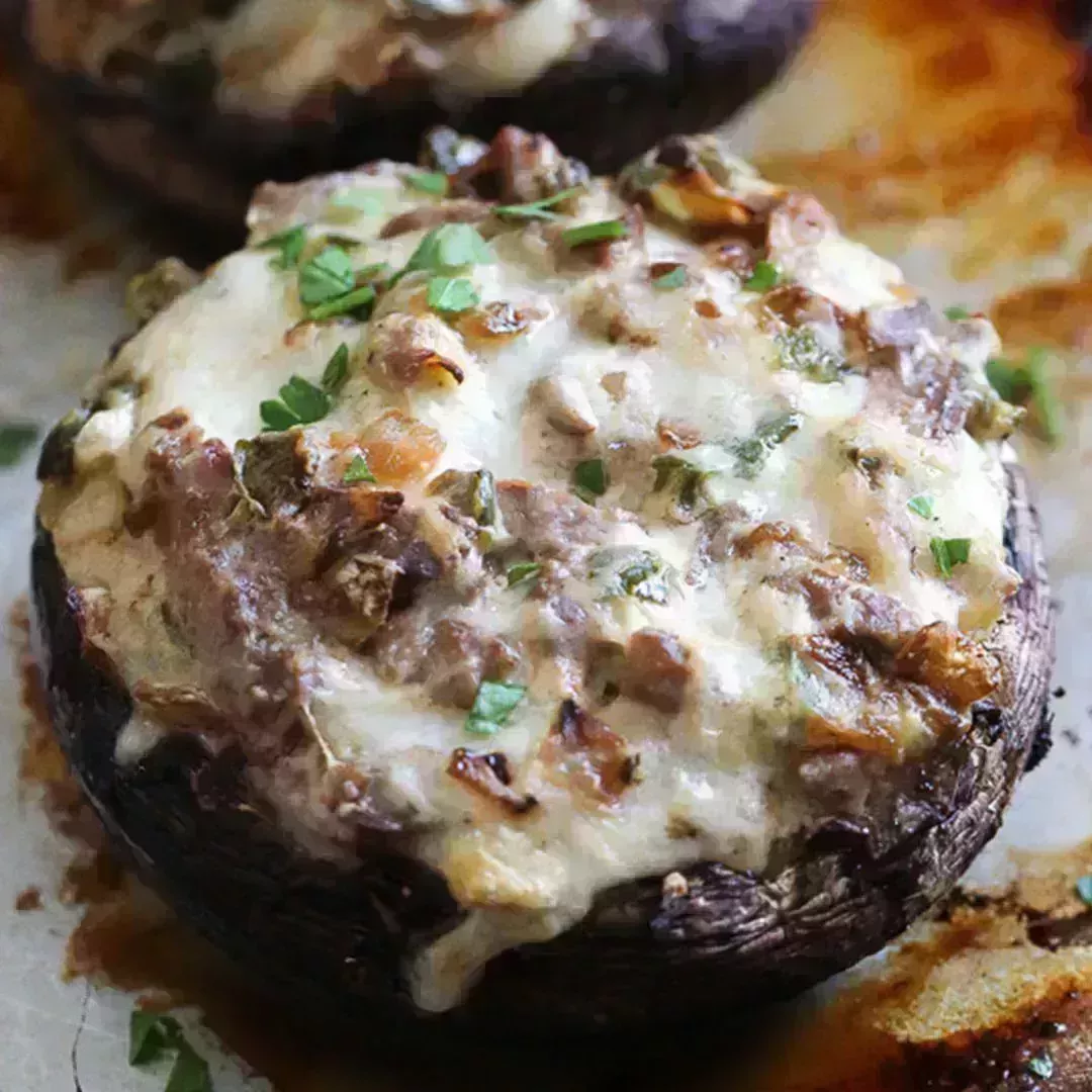 6 Champiñones Portobello rellenos de Philly Cheesesteak
