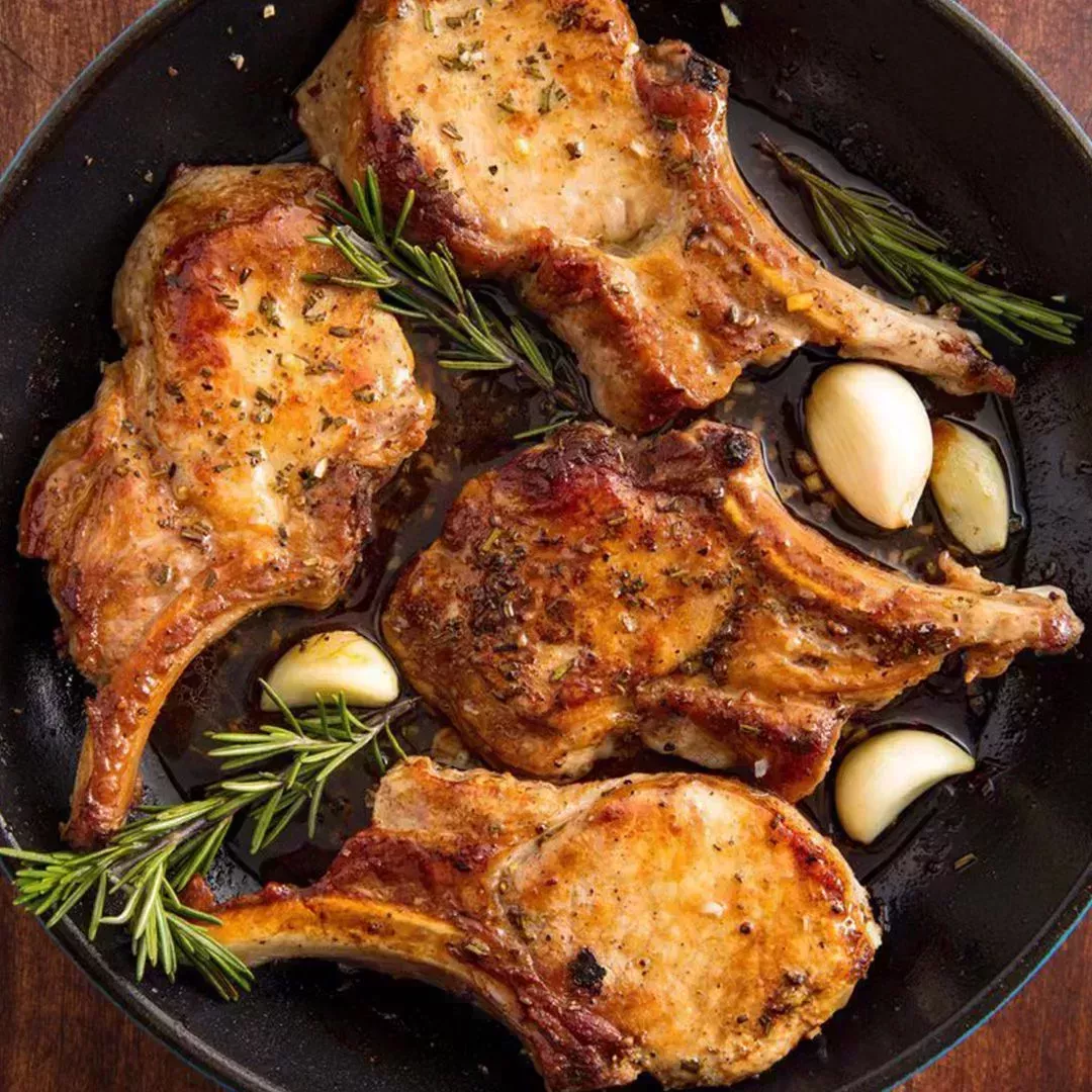 7 Chuletas de cerdo al ajo y romero