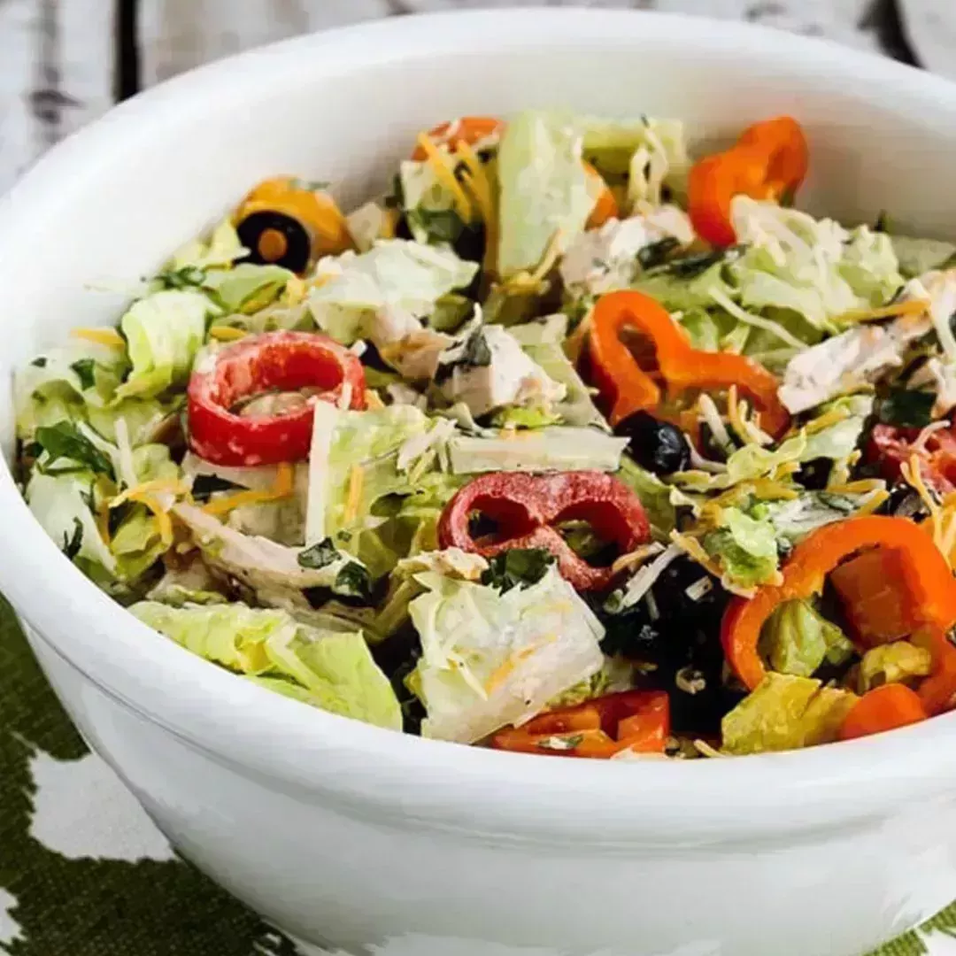 8 Ensalada de pollo del suroeste baja en carbohidratos con aderezo ranchero de chipotle.