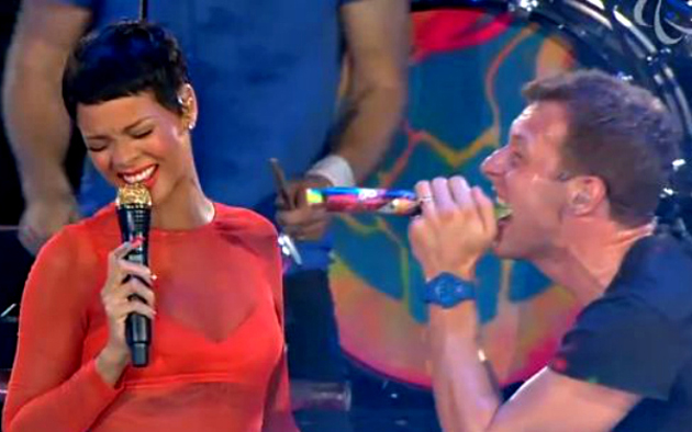 Rihanna promociona su primera pelĂcula, Battleship Rihanna, la Ășltima en sucumbir a las sandalias de llamas de Prada
