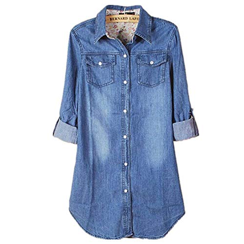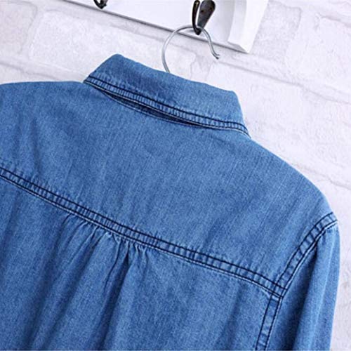 Blusa Señoras Mujer Sudadera Larga Manga Blusa Nuevas Mujeres Casual Moda Manga Larga Vintage Camisa Vaquera Azul Blusas Blusa Camisa Suelta Tops (Color : Blau, Size : L)