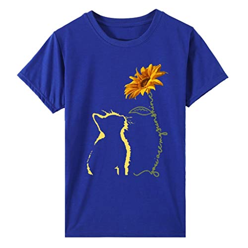 Luckycat Camisetas Niña Manga Corta Retro tee T Shirt Gato Impresión T-Shirt Regalo Camisa Verano Camisetas y Tops