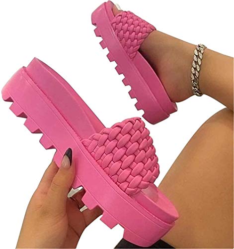 Zapatillas de moda de preparación de plataforma, para mujer, con correa trenzada de piel sintética, para verano, para exteriores, suela gruesa, cuñas, ajuste para camisa, falda, vaqueros, color rosa