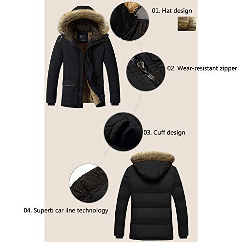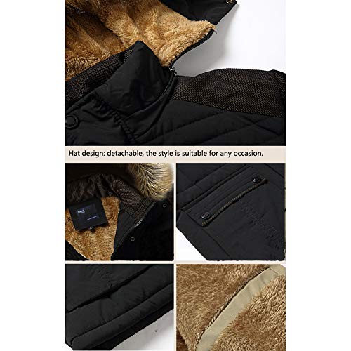 Chaqueta Parka Hombre Abrigos Parka con Capucha Cálido Abrigo de Algodón Prueba de Viento Abrigo Invierno Ejército Negro 4XL