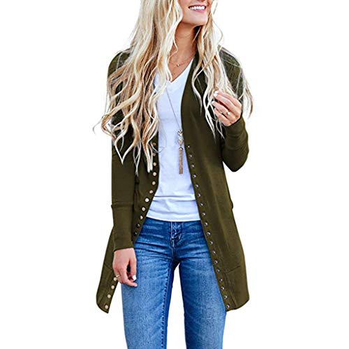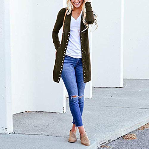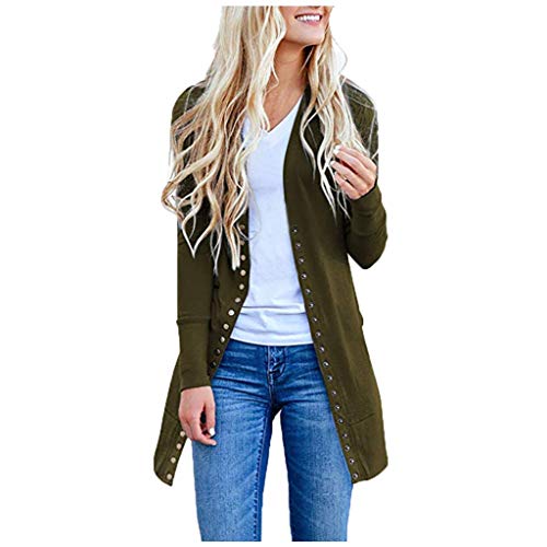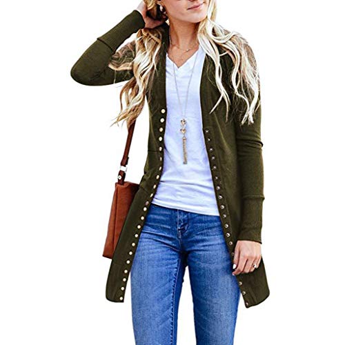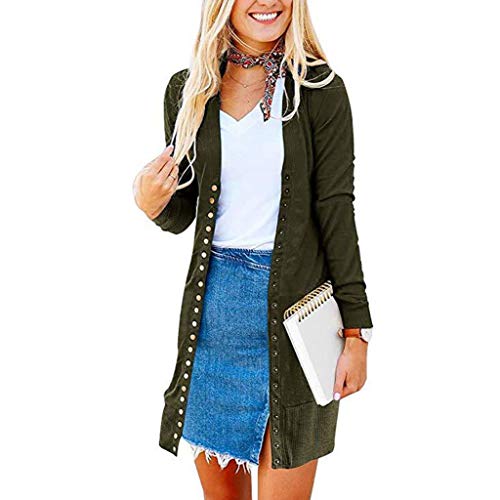 TUDUZ Cardigan Mujer Manga Larga Color Sólido Punto Abrigo Botón Longitud Mediana Chaqueta Suelto (Ejercito Verde, XL)