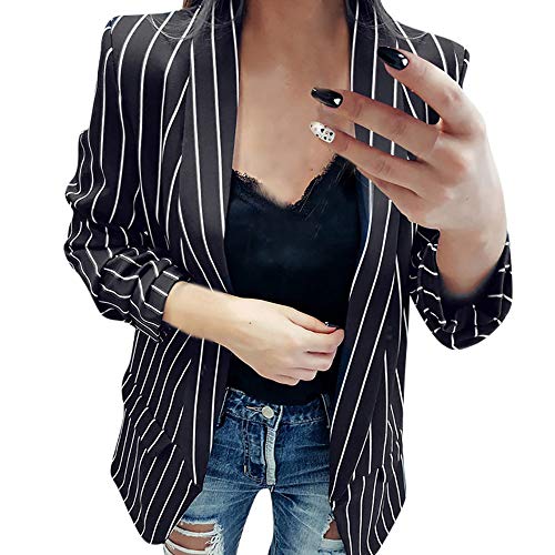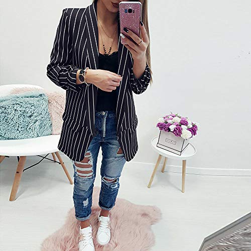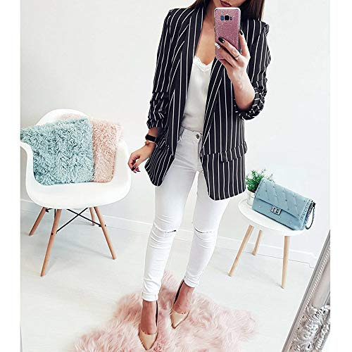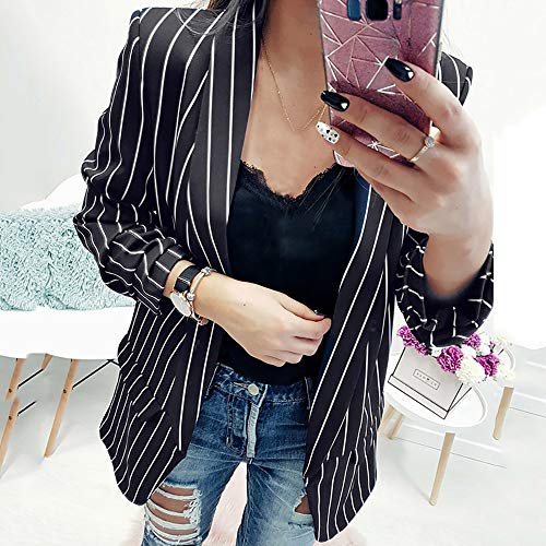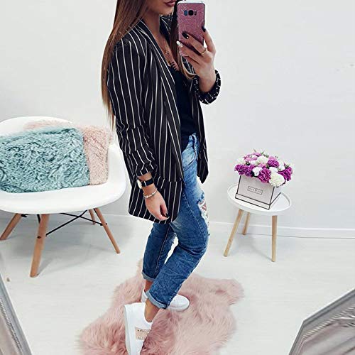 SHOBDW Mujer Liquidación de Venta de Moda para CÔrdigan de Manga Larga Tops Rayas Elegante Plumero Formal de Oficina Chaqueta de Las señoras Cuello de Solapa Traje de Abrigos(Negro,L)