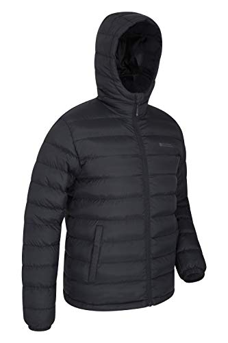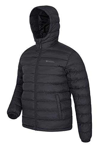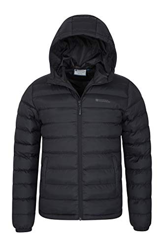 Mountain Warehouse Chaqueta Acolchada Seasons Hombres - Chaqueta Acolchada cálida Hombres, Ligera, Impermeable, Relleno de Microfibra - Chaqueta de Invierno Negro XL