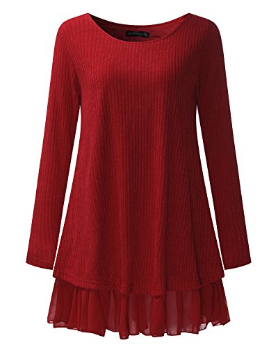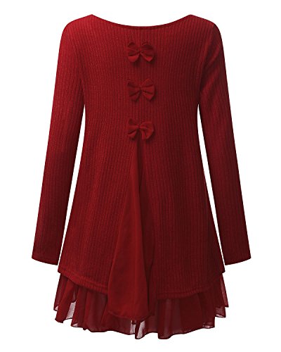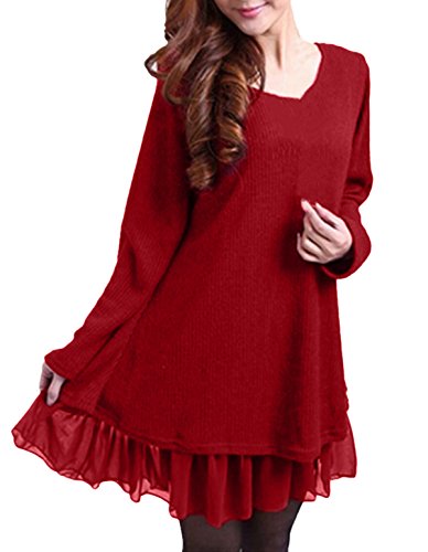 ZANZEA Jersey Mujer Jumper Suéter Larga Tops Vestidos de Encaje para Vestido Lazo Elegant Fiesta de Noche Suéter de Punto para Mujeres Otoño Invierno Tallas Grandes Rojo-399848 S