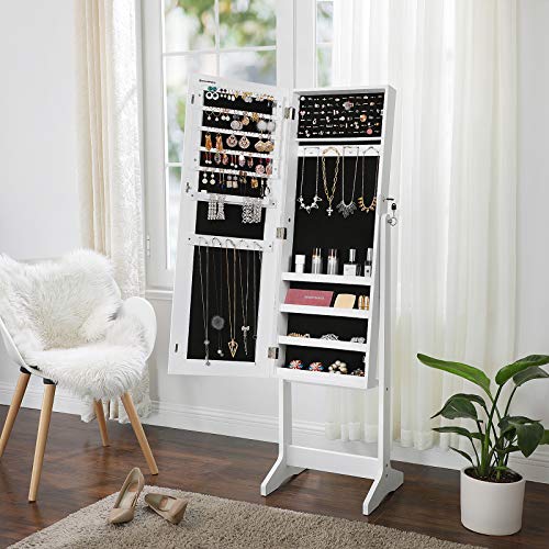 SONGMICS Gabinete de JoyerÍa, Armario con Espejo, Espejo de Pie, Espejo Largo Completo, Organizador de JoyerÍa con Cerradura, Ideal de Regalo, Blanco JJC69WT