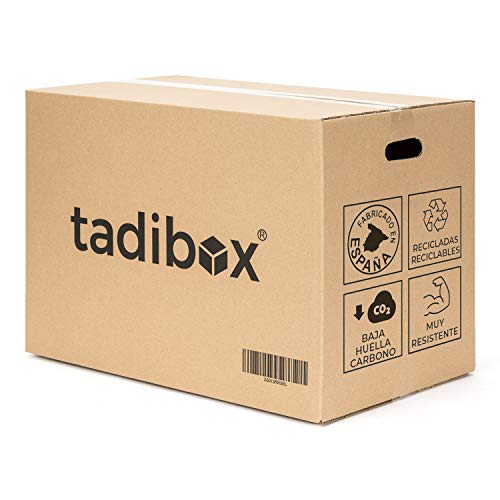 Tadibox L - 7 Cajas de cartón para mudanza y almacenaje con asas - Fabricadas en España - 47x35x39cm - Resistente con canal doble - Eco box