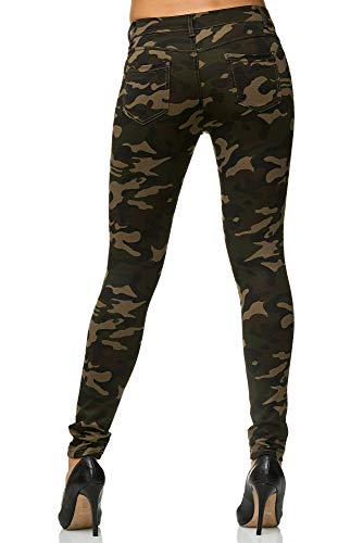 Elara Pantalón Elástico de Mujer Skinny Fit Jegging Chunkyrayan Ejercito Verde A92 Army 38 (M)