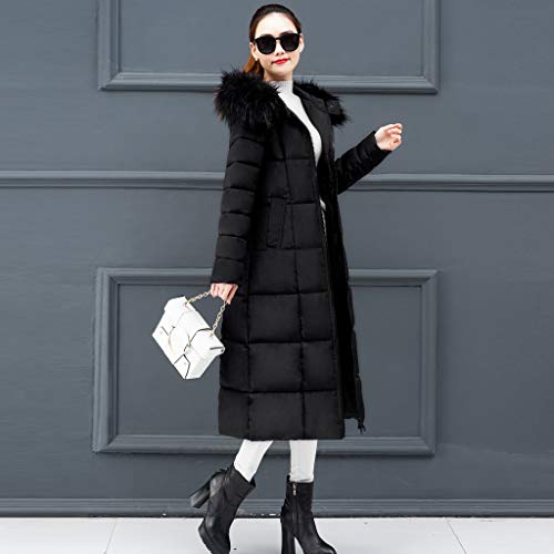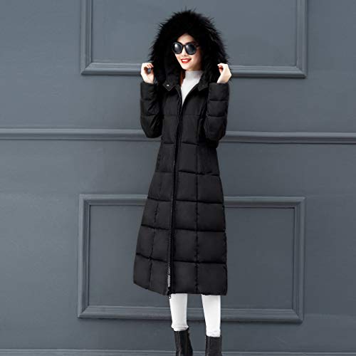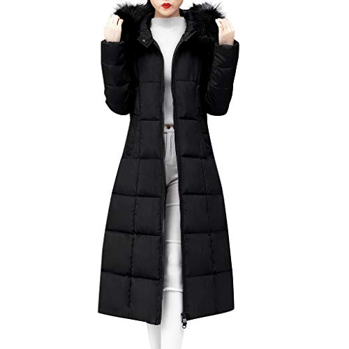 SHOBDW Moda Mujeres de Invierno Chaqueta Larga Abrigo de algodón Caliente Slim Trench Parka Ropa L-4XL (Negro, L)
