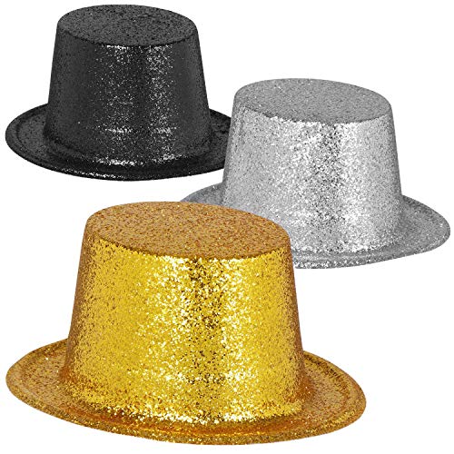 com-four® 3X Sombrero de Fiesta de Nochevieja - Cilindro con Brillo para Nochevieja - Sombreros para Nochevieja, Carnaval, Carnaval, Fiesta temática (Set05 - Cilíndrico)