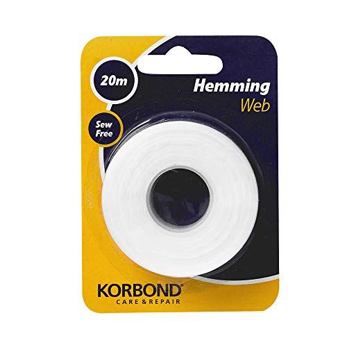 Korbond Cinta termoadhesiva para dobladillos, para pegar tela y hacer manualidades sin coser, ideal para orillas, pantalones, vaqueros, parches y uniformes, 2 cm x 20 m, white (110042)