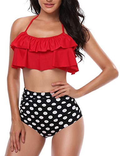 - āEstilo: vintage, Halter Cintura alta, Retro Boho Flounce Falbala Traje de baƱo Crea una silueta naturalmente femenina. Material: tejido elĆ”stico. 80% poliamida, 20% elastano